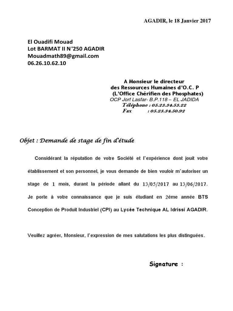 Dec 27, 2016 · lettre de motivation pour un stage académique.