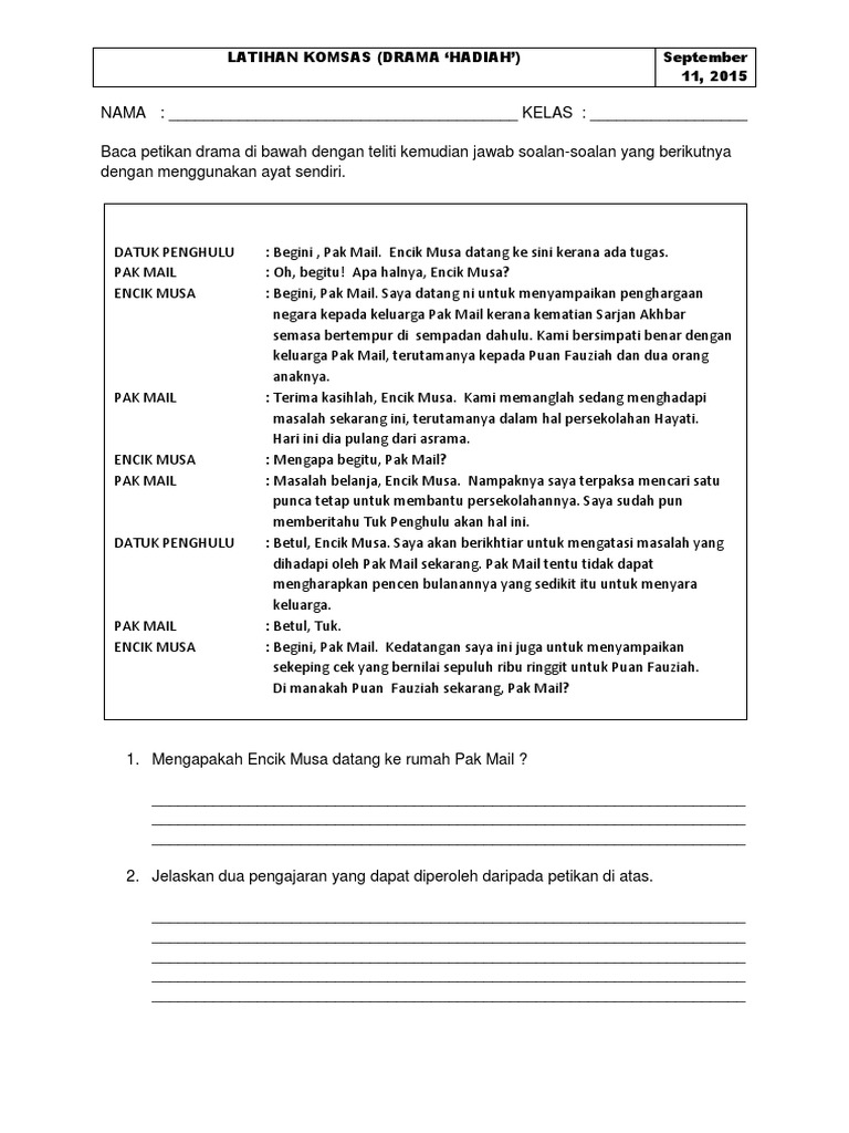 Contoh Soalan Dan Jawapan Komsas Tingkatan 1. Contoh soalan pt3 bahasa melayu 2022: Soalan 21 hingga soalan 25 berdasarkan novel sejambak bakti. ☆ like dan follow facebook kami : Ramlah dan saridevi telah berusaha dengan gigih untuk memajukan dan membangunkan kedai .