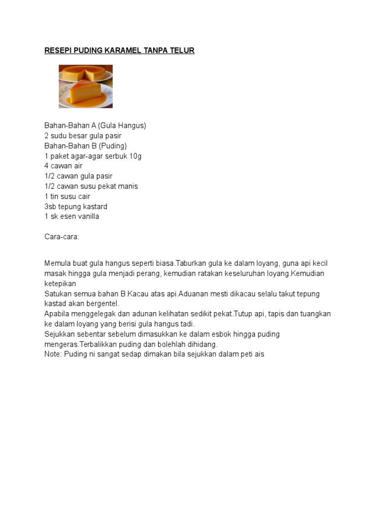 Resepi Puding Karamel Bakar Tanpa Telur. Yang tak boleh makan pun mesti boleh makan. Resepi puding karamel tanpa telur. Ini cara yang dikongsikan olehnya. Boleh ke masak puding tanpa .
