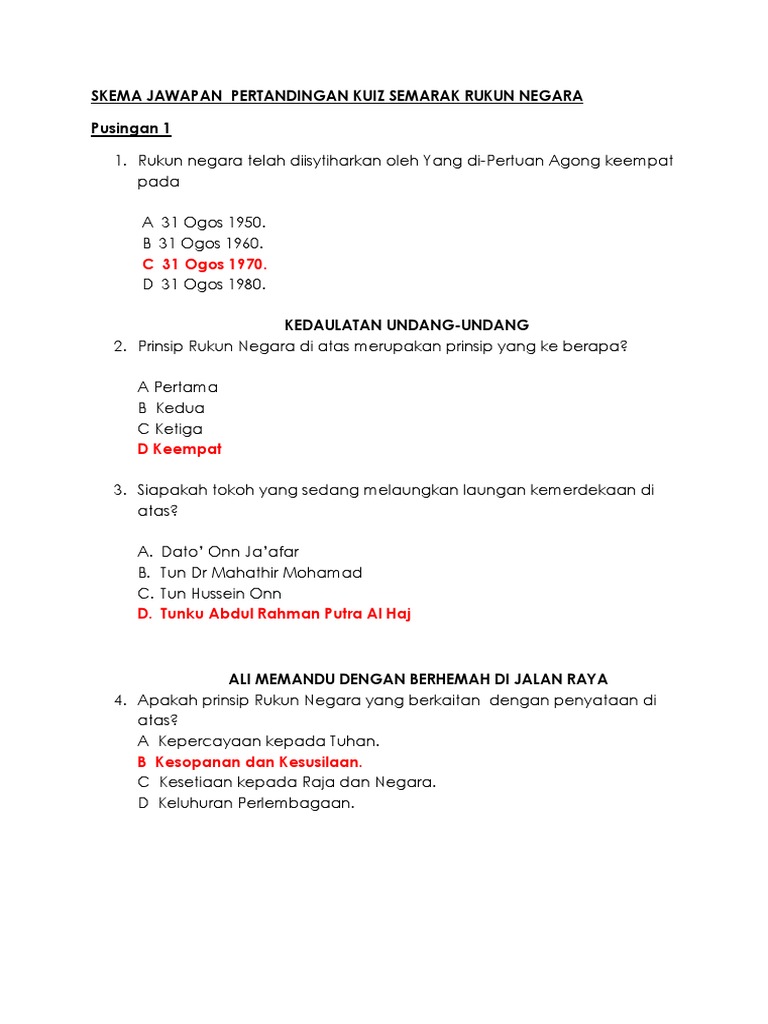 Soalan Objektif Rukun Negara. Contoh soalan kuiz perpaduan red pastel d question 16. Beliau dikenali sebagai bapa pembangunan modal insan malaysia. 5 prinsip rukun negara kepercayaan kepada tuhan semua rakyat malaysia harus mengakui bahawa tuhan melebihi sebarang kuasa lain. Rakyat yang mematuhi prinsip rn akan mempertahankan institusi kesultanan dan beraja.